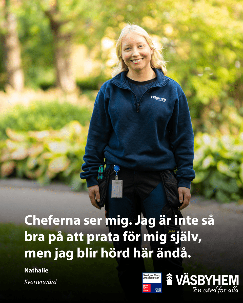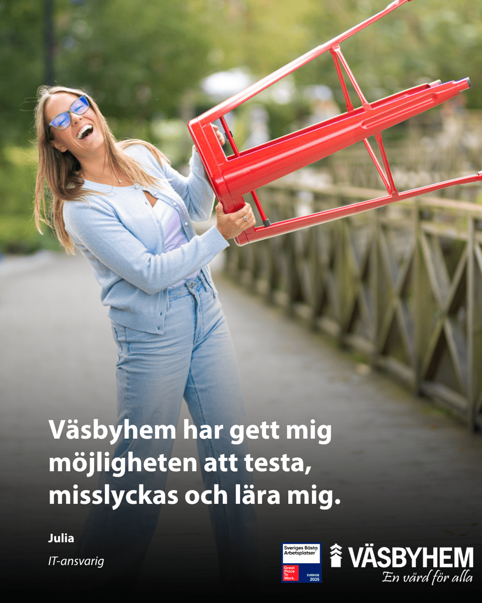 Vi satsar på trivsel och delaktighet, där alla medarbetare har möjlighet att påverka. Här firar vi våra framgångar, stora som små, och skapar en arbetsplats fylld av engagemang och stolthet. På Väsbyhem kan du vara dig själv, känna dig inkluderad och uppskattad för den du är.